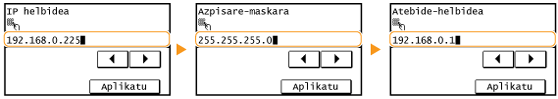Zehaztu IP helbidea, azpisarearen maskara eta atebidearen helbidea (edo atebide lehenetsia).
