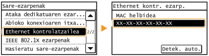. Sakatu <Sare-informazioa> <Sare-konexioaren metodoa> eta hautatu begiratu nahi duzun ezarpena. |