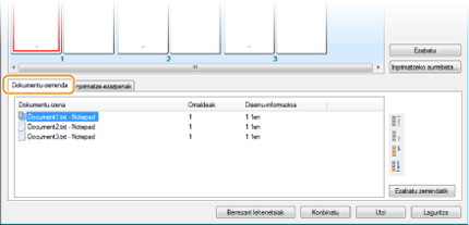 Sakatu [Dokumentu-zerrenda] bereizlea 1-4 urratsetan gehitutako dokumentuak bistaratzeko. Dokumentuak kentzeko, hauek zerrendan hautatu eta sakatu [Ezabatu zerrendatik].