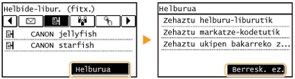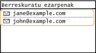 Aurretik erabilitako azken hiru hartzaileen arteko hartzaile bat hauta dezakezu. Aurretik erabilitako hartzaile bat adierazterakoan, makinak eskaneatze ezarpen berak eta hartzaile horretara dokumentuak azken aldian bidaltzerakoan erabilitako dentsitatea ere bai ezarriko ditu.