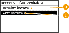 Fax-zenbakia berresteko pantaila bistaratzen du.