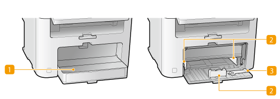はがきなどの小さいサイズの用紙をセットするとき、手前の用紙ガイドに取り付けます。
