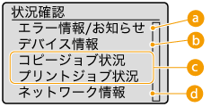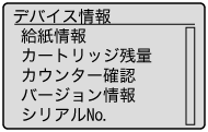 用紙サイズやトナーカートリッジの残量などの本機の状況を確認できます。