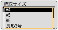 を押した後に原稿サイズを選ぶ画面が表示されます。以下の手順に従ってください。1 | 原稿のサイズを選び、 を押す![]() |