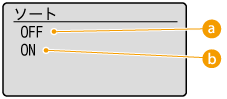 | | 複数ページの原稿を複数部コピーするときに、<ソート>を<ON>に設定すると、原稿どおりのページ順で1部ずつ仕分けてコピーされます。会議の配布資料などを作成するときに便利です。 |