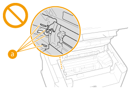 移転や引っ越しなどで本機を輸送するとき輸送中の破損や故障を避けるため、次のようにしてください。 トナーカートリッジを取り外す 購入時のパッケージ(箱)や梱包材を使ってしっかりと梱包する 稼働音が気になる場合お客様の使用環境や動作モードにより、稼働音が気になる場合は、事務所とは別の場所に設置することをおすすめします。 その他の注意事項本機に貼ってある注意ラベルの指示に従ってください。 本機に強い衝撃や振動を与えないでください。 開閉部を無理に開け閉めしないでください。故障の原因になることがあります。 本体内部の接点部( )に触れないでください。故障の原因になることがあります。![]() 印刷中は電源を切らないでください。また、カバーの開閉、用紙の出し入れも行わないでください。紙づまりの原因となります。 |