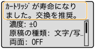 トナーカートリッジが寿命に近づいています。メッセージは表示されていなくても、トナーカートリッジを交換する目安としてください。