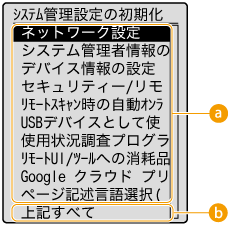 <上記すべて>![]() リモートUI設定を初期化したとき |