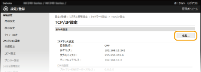 IPv4のDNSを設定する1 | [IPv4設定]にある[編集]をクリックする ![]() |