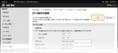 [TCP/IP設定]をクリックする