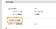 NTP/SNTPサーバーと通信できるか確認するには登録したサーバーとの通信状況を確認するときは、[設定/登録] [ネットワーク設定] [TCP/IP設定]をクリックして表示される[SNTP設定]の[NTPサーバー確認]をクリックします。正しく接続されているときは下の画面のように表示されます(ただし、このときは通信状況を確認するだけで、時刻合わせは行いません)。![]() |