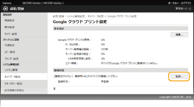 本機を登録するときやGoogle Cloud Printを使って印刷するときは、インターネットに接続できる環境が必要です。また、インターネットへの接続料金はお客様のご負担となります。 国と地域によっては、Google Cloud Printをお使いになれない場合があります。 Google Cloud PrintはIPv6アドレスからの印刷に対応していません。 |