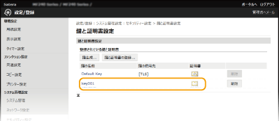 登録する証明書の[鍵の名前]または[証明書]をクリックする