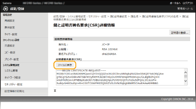 証明書署名要求(CSR)のファイルがパソコンに保存されます。