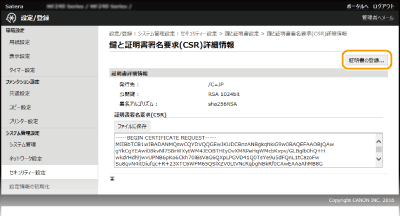 証明書署名要求(CSR)で生成した鍵ペアは証明書を登録するまで使うことができません。認証局から電子証明書が発行されたら、次の手順で登録します。