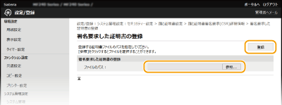 [参照]をクリックし、証明要求した証明書のファイルを指定したあと、[登録]をクリックする