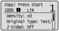 (COPY/SCAN) the main screen for the selected function is displayed. The copy main screen is shown below as an example.