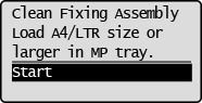 Dirt may adhere to the fixing units inside the machine and cause black streaks to appear on printouts. To clean the fixing unit, perform the following procedure. Note that you cannot clean the fixing unit when the machine has documents waiting to be printed. To clean the fixing unit, you need paper larger than plain A4 or Letter size paper. Set the paper in the manual feed slot before performing the following procedure.