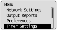![]() | All the settings about the timer are listed with short descriptions. Default settings are marked with a dagger ( ). |