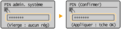 Configuration des réglages via l'IU distanteLancez l'IU distante en Mode administrateur système. Cliquez sur [Réglages/Enregistrement] [Gestion du système] [Modifier] et spécifiez les réglages nécessaires sur l'écran qui s'affiche.L'IU distante permet d'enregistrer une multitude d'informations (coordonnées, commentaires de l'administrateur, lieu d'installation de l'appareil) ainsi que les réglages configurés à partir du panneau de commande. Les informations enregistrées sont visibles sur la page [Infos périphérique] de l'IU distante. Vérification des informations sur l'administrateur système Si vous avez oublié le code PINN'oubliez pas votre code PIN. Si vous l'oubliez, contactez votre revendeur agréé Canon ou consultez l'aide en ligne de Canon. Si un PIN administrateur système est défini
