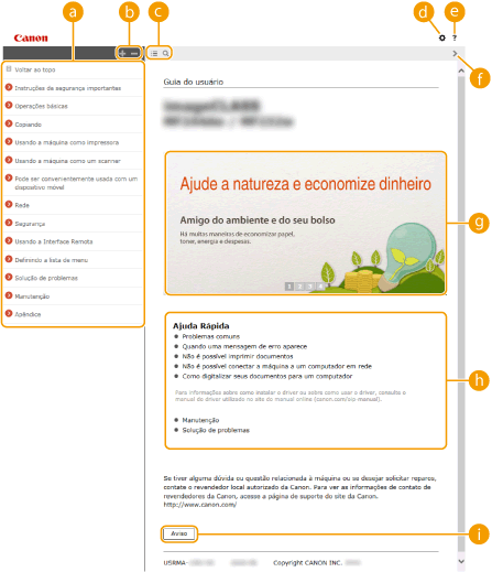 Clique para exibir informações sobre como visualizar o Guia do usuário, como realizar uma pesquisa e outras informações.