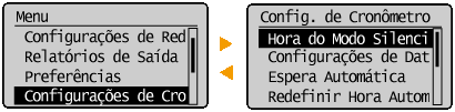 Você pode alterar uma variedade de configurações relacionadas à tela, como a velocidade de rolagem ou o idioma: Para alterar a tela automaticamente exibida quando a máquina permanece ociosa por um tempo especificado: |