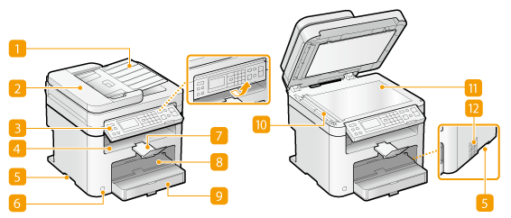 Alimenta documentos automaticamente na máquina para digitalização. Quando uma folha ou mais são carregadas no alimentador, os documentos podem ser digitalizados continuamente.