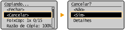 no painel de operação. Você pode também cancelar depois de verificar o estado da cópia.