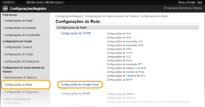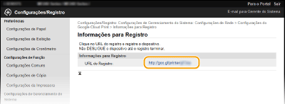 Ative a função Google Cloud Print da máquina. Também é possível desativar a função Google Cloud Print da máquina.