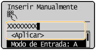 3 | Digite a chave de rede que você anotou. Digite a chave de rede usando o teclado numérico e selecione <Aplicar>, e pressione . Inserindo texto![]() |