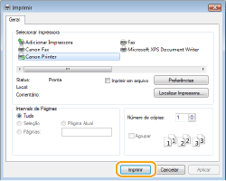Ao imprimir a partir do aplicativo Windows Store no Windows 8/10/Server 2012Coloque os botões do lado direito da tela e use o procedimento abaixo. Windows 8/Server 2012 Toque ou clique em [Dispositivos] o driver de impressora desta máquina [Imprimir].Windows 8.1/Server 2012 R2 Toque ou clique em [Dispositivos] [Imprimir] o driver de impressora desta máquina [Imprimir].Windows 10 Toque ou clique em [Imprimir] no menu do aplicativo do driver da impressora desta máquina [Imprimir].Se você imprime usando este método, apenas um número limitado de configurações de impressão fica disponível. Se a mensagem [A impressora requer sua atenção. Vá para a área de trabalho para cuidar dela.] for exibida, vá para a área de trabalho e siga as instruções na caixa de diálogo exibida. Essa mensagem aparece quando a máquina está definida para exibir o nome de usuário durante a impressão e situações semelhantes. |