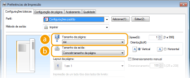 Interface do usuário clicávelVocê pode especificar facilmente o layout da página, a posição de encadernação, etc. intuitivamente na imagem de visualização. Para obter mais informações, clique em [Ajuda] na tela do driver de impressora. ![]() |