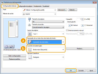 Selecione [Impressão de um lado] ou [Impressão dos dois lados] em [Impressão de um lado/dos dois lados/de livreto]
