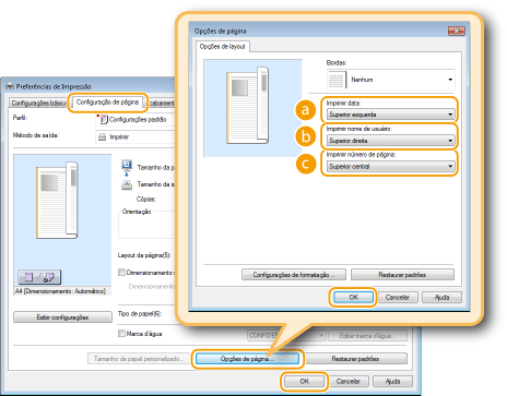 [Imprimir número de página]Alterando o formato de impressão de datas e números de página |