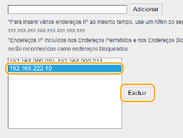 Excluindo um endereço IP das exceções Selecione um endereço IP e clique em [Excluir]. |