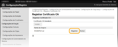 Clique [Registrar Chave e Certificado] ou [Registrar Certificado CA].