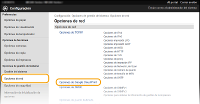 [Opciones de Google Cloud Print].