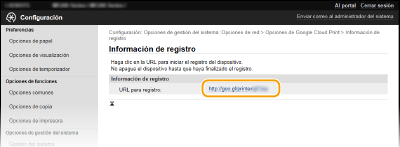 Haga clic en el vínculo de la URL que aparece en [URL para registro].