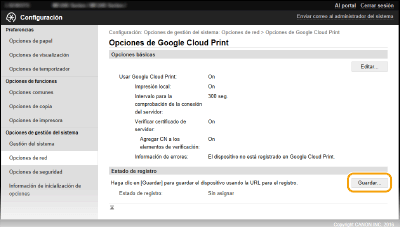 Registro del equipo en Google Cloud Print
