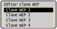 4 | Seleccione la clave WEP (1 a 4) que desee editar y pulse .Es posible registrar hasta cuatro claves WEP. ![]() |