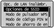 Seleccione <Opciones de LAN inalámbrica> y pulse