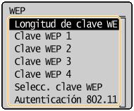 Visualización de la información sobre WEP y WPA/WPA2-PSK1 | Seleccione <Opciones de seguridad> y pulse . | ||||||||