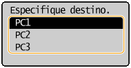 Escanee desde el equipo de una forma más sencillaSi tiene alguna preferencia que utilice de forma regular, como escaneado a color o en blanco y negro, o un ordenador predeterminado en el que guarde los documentos escaneados, puede resultarle complicado especificar estas opciones cada vez que escanee. Registre estas opciones en una tecla [Scan -> PC] para poder escanear con tan solo pulsar una tecla. Escaneado utilizando la tecla [Scan -> PC] |
