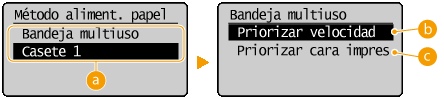 Papel), se aplicará <Priorizar velocidad> al origen del papel. En este caso, debe cargar el papel de la misma forma que cuando se selecciona <Priorizar velocidad> (