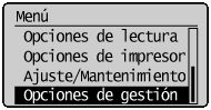 Opciones de temporizador Opciones comunes*5 Opciones de copia Opciones de lectura Opciones de impresora Ajuste/Mantenimiento Opciones de gestión del sistema Inicializar todo |