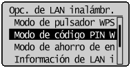 Seleccione <Modo de código PIN WPS> y pulse