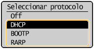 Seleccione <DHCP>, <BOOTP> o <RARP> y pulse