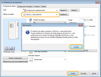 Seleccione [Edición y vista preliminar] en [Método de salida].