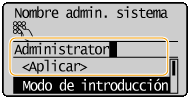 Introduzca hasta 32 caracteres en el nombre del administrador del sistema, seleccione <Aplicar> y pulse