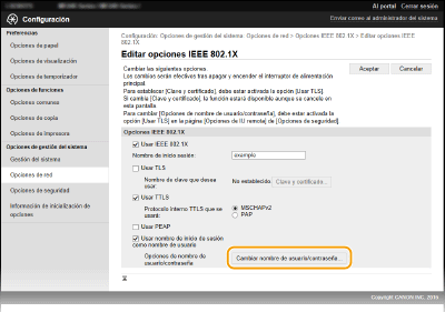 Seleccione la casilla de verificación [Usar TTLS] o [Usar PEAP].